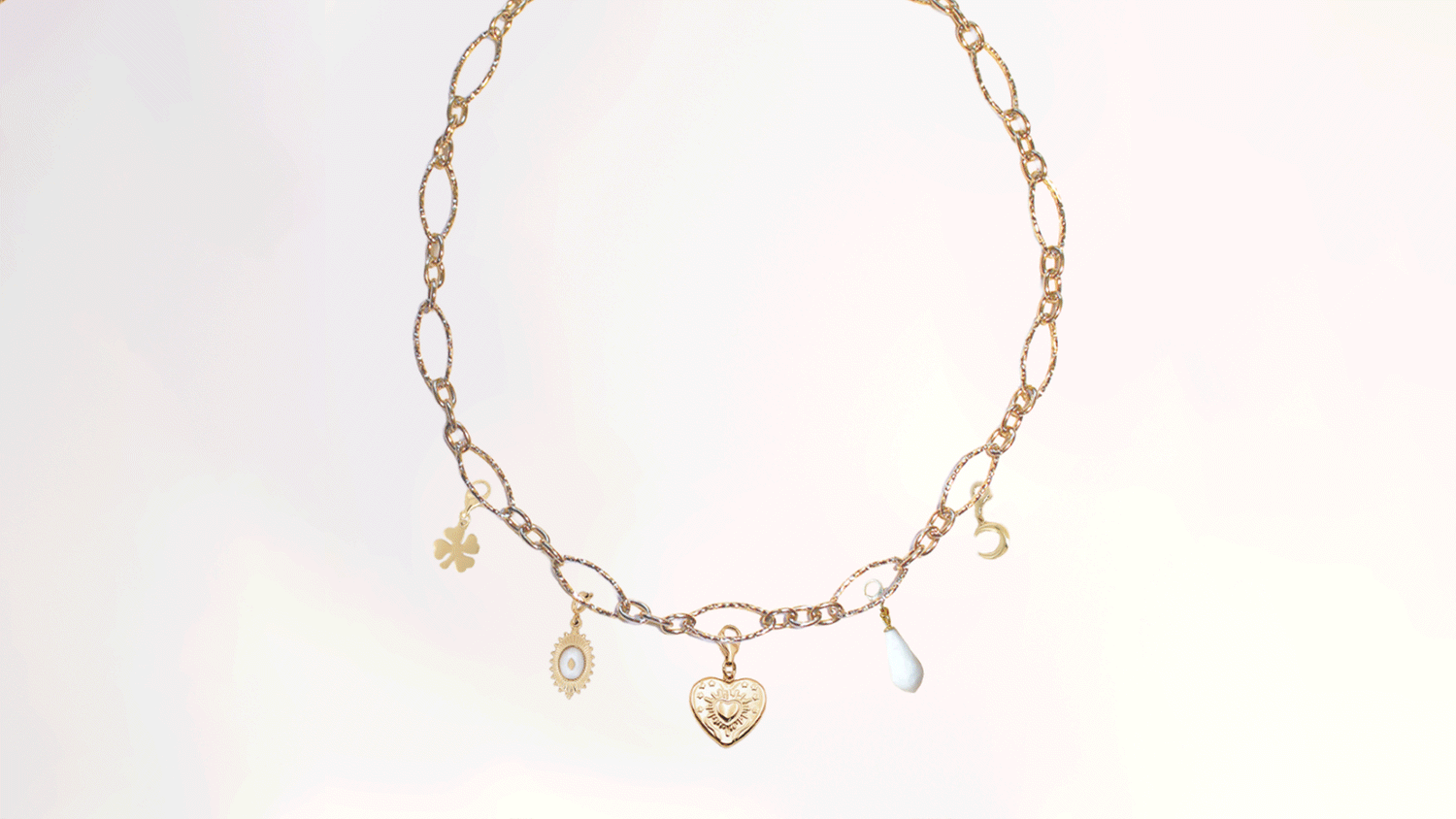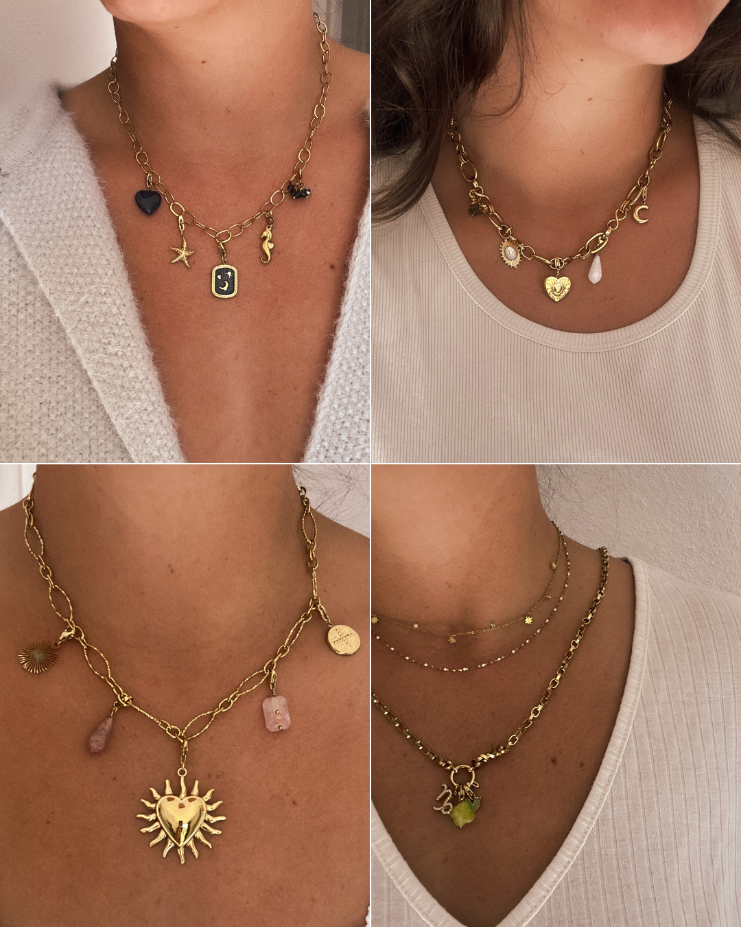 Nos charms sont disponibles en acier inoxydable, en laiton plaqué or 18K, en résine, en verre, en céramique ou en perles d’eau douce. ✨