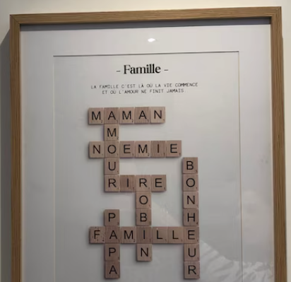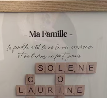 Qu’il s’agisse de mots doux ou des prénoms de votre famille, cette composition révèle la manière dont vos prénoms s’entrelacent et symbolisent la force de votre unité.
