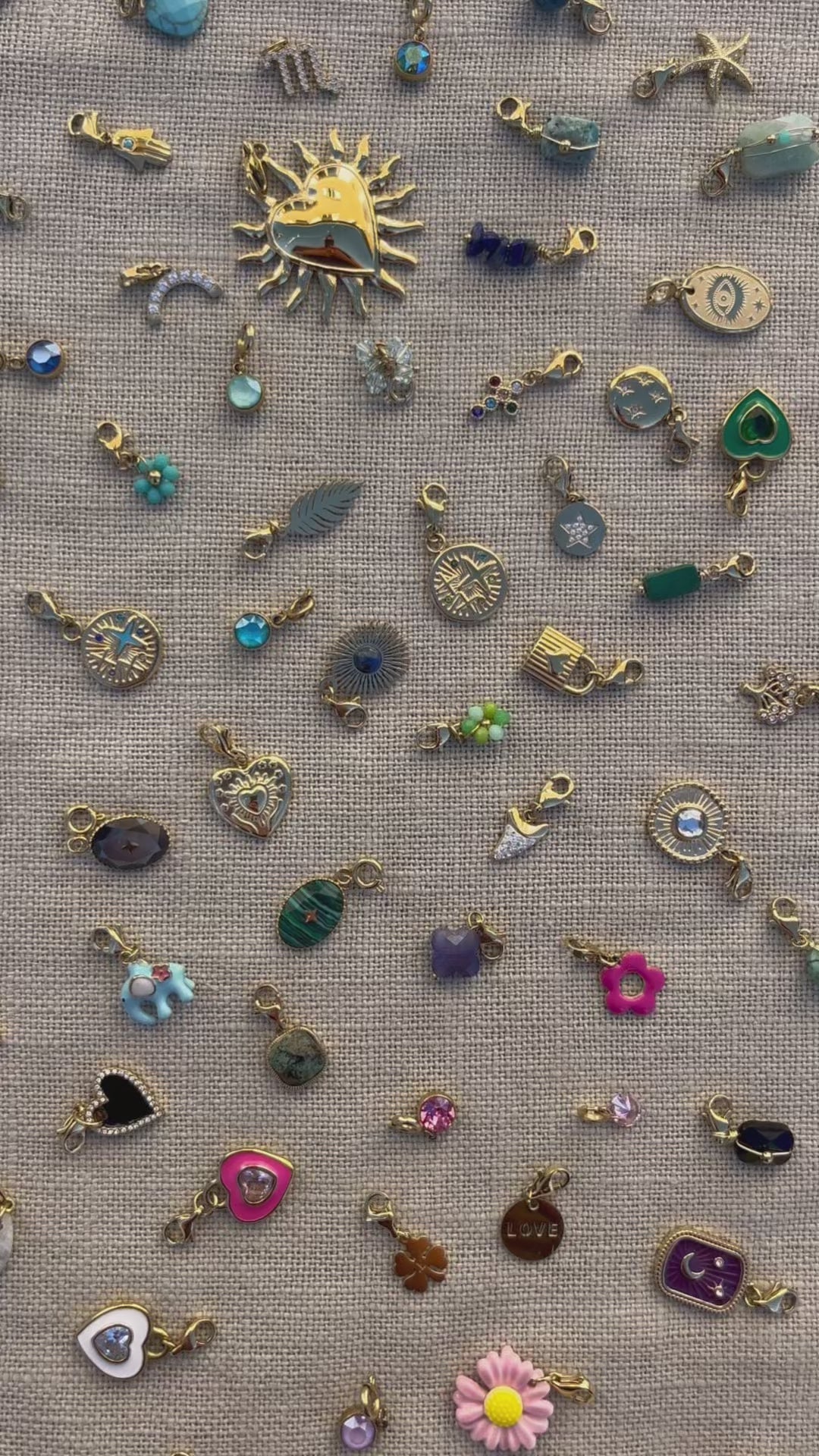 Nos charms sont disponibles en acier inoxydable, en laiton plaqué or 18K, en résine, en verre, en céramique ou en perles d’eau douce. ✨